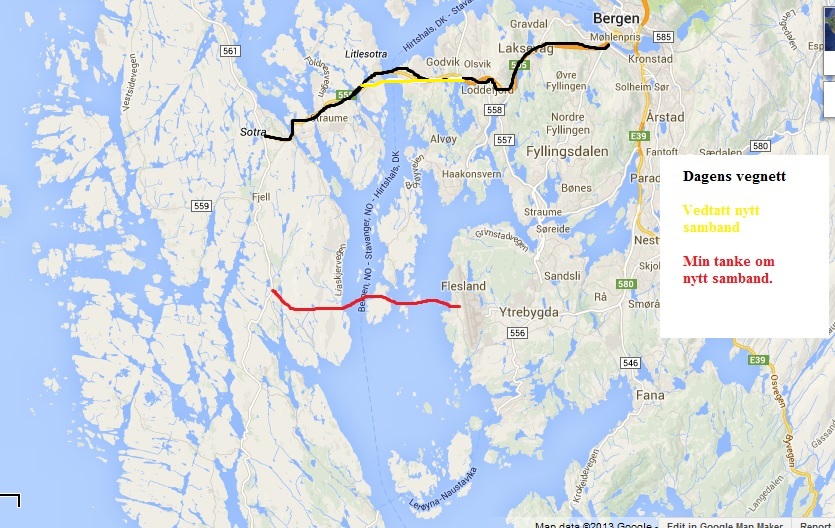 11. Dette er helt riktig tanke. Man kjører kun den sørlige traseen hvis man skal til området fra Laguen og sørover. Men dette er ikke mulig i måneskinn før man knebler Straume/Sartor mafiaen. Ressurs sterke ledere i næringslivet på Straume som også uheldigvis har innpass i kommunepolitikken som styrer dette. Bare til å danne en storkommune med Sund og Øygarden for å få vannet ut innflytelsen deres i politikken.